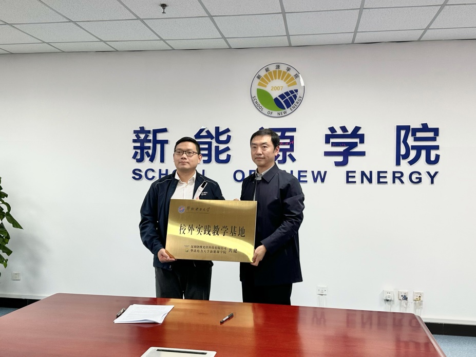 李美成代表学院与深圳创维光伏科技有限公司签约并授予“华北电力大学校外实践教学基地”牌匾,标志着双方合作迈向新的台阶。